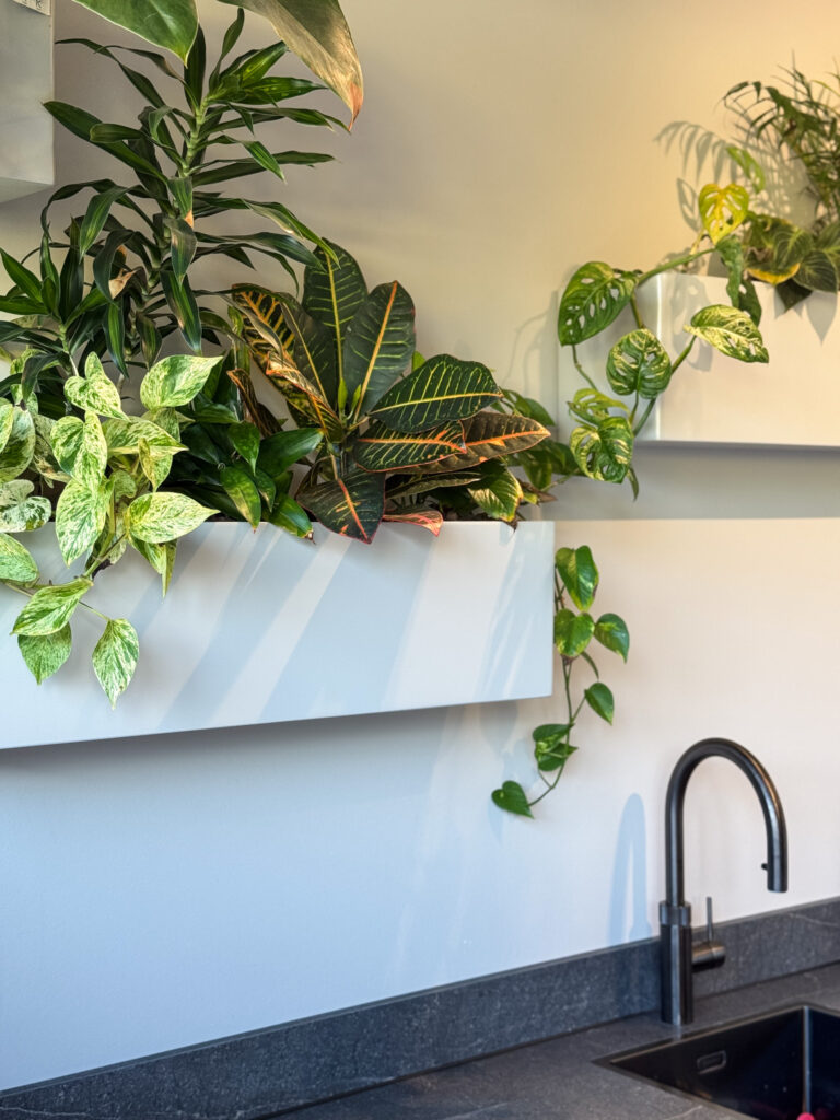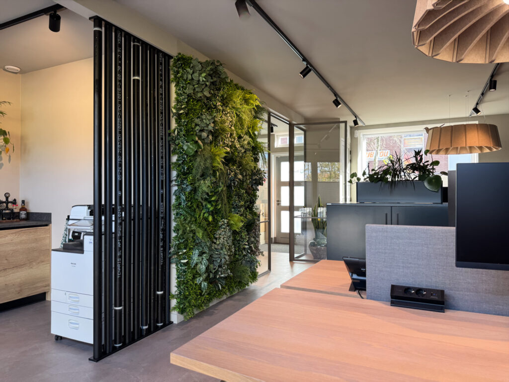 Op verzoek van de klant hebben we veel planten toegevoegd. Een mix van echte en kunstplanten zorgt voor levendigheid en een natuurlijke balans in de ruimte.