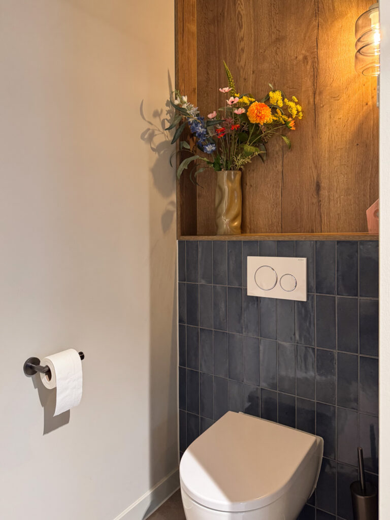 Het doel was een stoer interieur met een klassieke uitstraling, passend bij het karakter van het pand. We kozen voor warme grijstinten in combinatie met donkerblauw en Rijksgroen (de kleur uit het Rijksmuseum).
