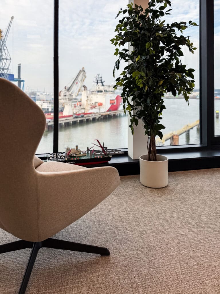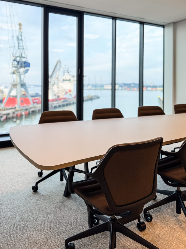 Greenport Rotterdam is een havenlocatie waar maritieme bedrijven hun projecten uitvoeren met alle faciliteiten op één plek. Voor het nieuw opgeleverde kantoorpand dachten we mee over de invulling en leverden we de kantoormeubels, passend bij het bestaande ontwerp. We kijken binnen bij Hebo, die het pand in gebruik heeft genomen.